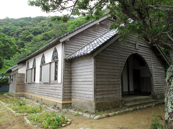 かつてのキリシタン集落。高度経済成長の下、野崎島では過疎化が進み、1971年、住民全てが島を離れたことにより教会は一時荒廃してしまうが、小値賀町により修復・整備されました。