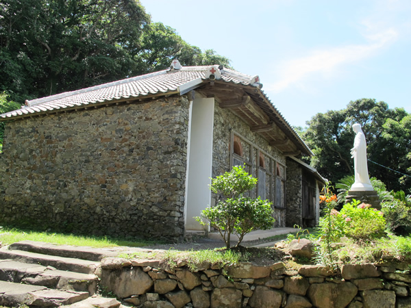 出津教会の巡回教会として建てられた、玄武石を外壁にした和瓦葺きの建物です。