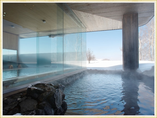 洞爺湖や羊蹄山が広がる自然と一体の温泉です。日本情緒溢れる数寄屋造りの温泉「山泉」。湯煙越しに窓の外の広々とした庭園を眺めながら、暖かい湯に肩までつかる。ふと遠くに目を移すと、またその向こうには洞爺の自然が広がっています。