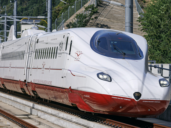 高い信頼性をもつ、「N700系」車両を基本として「8両編成」に。「凛」をキーワードとした日本的なおもてなしの心地よさを表現しています。最高速度は300km/h(山陽新幹線管内)九州新幹線区間の急勾配(35%)に対応するために全電動車化されました。