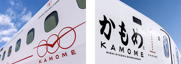 三つの輪に飛行するカモメの姿が重ねられたシンボルマーク。「九州の経済と文化と人を結び、豊かなコミュニケーションを生む」「『新幹線つばめ』のDNAを継承しながら、変化・進化させた新幹線『かもめ』を表現」「西九州から吹く暖かくて優しい風を世界へ届ける」を掲げています。
