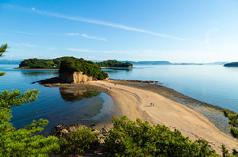 瀬戸内海で2番目に大きな島である小豆島。1年を通じて温暖な気候で、オリーブや素麺、醤油の産地としても知られています。干潮時に姿を現す「エンジェルロード」や小豆島の玄関口・土庄港にあるオリーブ型の立体作品「太陽の贈り物」など、神秘的な島の風景とアートをじっくり堪能できます。