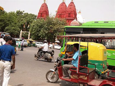 デリー市内は色鮮やかなサイクルリキシャやたくさんの人々で大賑わい。このごちゃごちゃ感もインドならでは!