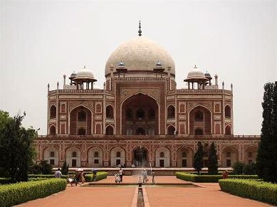 世界遺産フマユーン廟。イスラム文化の繊細さとインドの伝統様式が融合した装飾は必見です!