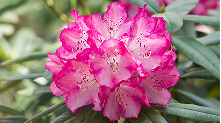 漢字で石楠花または石南花と書く。世界中で園芸種が数多く作出され、花色、葉形、樹姿に様々なバリエーションがあり、迫力のある花と樹姿により「花木の王様」と称されている。