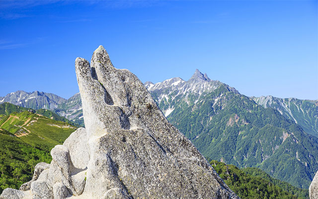 北アルプス燕岳のイルカ岩と槍ヶ岳