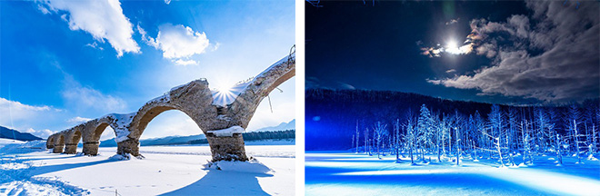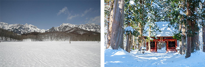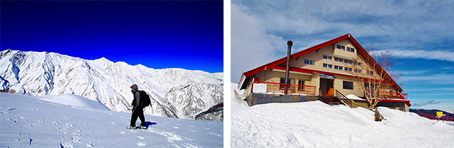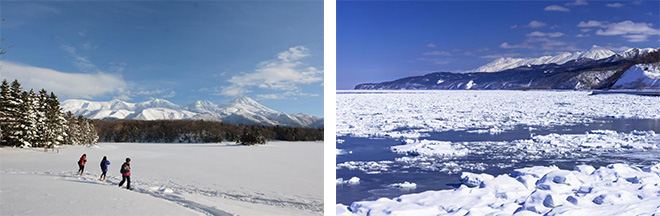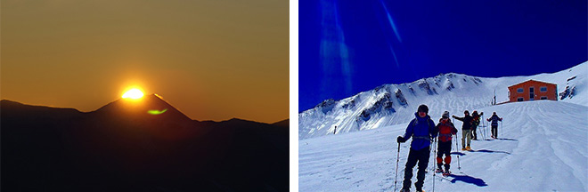 左下:白銀に輝く千畳敷カール内をスノーシューで散策!(イメージ)