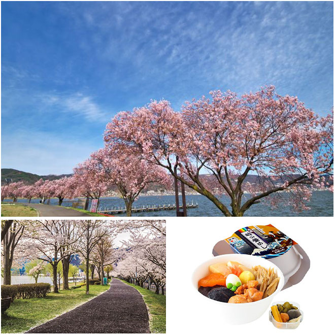 上:諏訪湖の桜並木(イメージ)