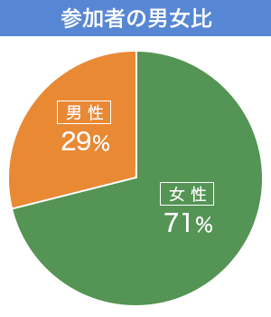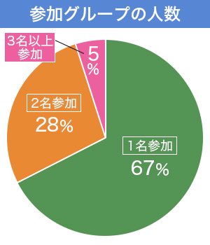 ・平均するとおひとり参加の方が6割以上と、はじめての方もお気軽にご参加いただけます。