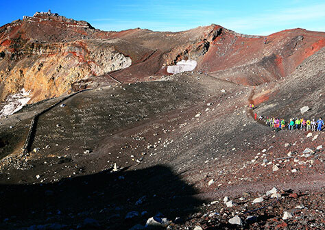 富士吉田口山頂から約2時間かけて富士山火口を一周するお鉢めぐり。