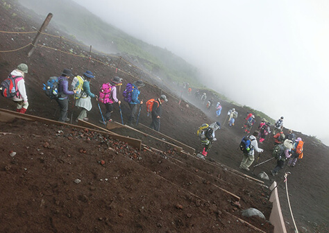 富士山登山の行程を過去の関東発 富士山お鉢めぐり・剣ヶ峰(1泊2日)のコースを基にご案内します。