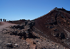 富士山の火口を1周することを『お鉢めぐり』といいます。富士山の火口は直径600m、1周すると歩行距離3km、所要時間1時間半かかります。
