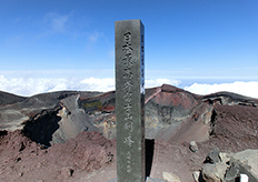 富士山レーダーがあった場所としても有名な日本最高地点(3776.2m)はお鉢めぐりの途中、剣ヶ峰にあります。