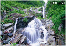 4つの登山ルートがある荒島岳。そのひとつである勝原コースは、旧勝原スキー場からスタートし、ブナ原生林を進む人気のルートだ。その旧勝原スキー場から美濃街道を九頭竜湖・白鳥方面へ車で5分ほど走ると、荒島岳から流れ出る「仏御前の滝」がある。落差約100mに及ぶ滝までは遊歩道が整備されており、駐車場から約10分で滝が見える。遊歩道が閉鎖される冬場には、荒島岳を目指す山スキーヤーの登山ルートにもなる。