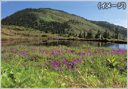 会津を代表する山として「会津駒」の愛称で親しまれている会津駒ヶ岳。夏場には、山全体が草原のように青く茂り、涼やかな風を運んでくる。特に山頂から中門岳までの稜線はなだらかで、地溏の点在する湿原が広がっており、ハクサンコザクラ、タテヤマリンドウ、ミヤマキンポウゲなどの高山植物が次々に花開く。尾根の突端まで木道が整備されているので、奥只見湖や三岩山などを望むこともできる。