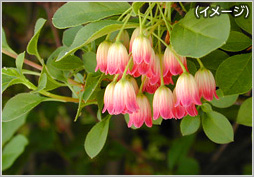 日本固有の植物で、枝先に輪生状に集まった花をつけるサラサドウダン。恵那山では山頂付近に自生し、白に近いクリーム色で先端のみ淡い赤色をした花が、6月下旬~7月上旬頃に咲く。鈴なりの花を楽しもうと、開花時期に合わせて登山する人も多い。また、秋には葉が色づき、山頂付近を紅色にする。山頂付近ではサラサドウダンの変種で、赤い花びらに深紅の筋が入るベニサラサドウダンも見られる。
