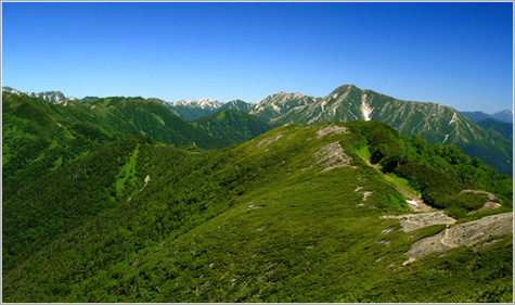 ピラミッド型の山容をして天を突く常念岳は松本、安曇野から眺望できる。初めて登頂し、なぜ常念岳かを明らかにしたのはイギリス人宣教師のウェンストン。彼は地元の猟師から、一晩中お経と鐘の音が聴こえるので常念坊と呼んでいると聞き、常念岳としたようだ。アオノツガザクラ、イワギキョウ、コマクサ、チングルマ、ミヤマキンポウゲなどが咲き、周辺には珍しい高山蝶が生息する。