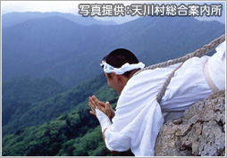 古くから修験道の山であり、山全体が聖域とされ、現在でも女性は立ち入ることのできない大峯山山上ヶ岳。大峯大橋の登山口から湧き水のあるお助け水、洞辻茶屋を経る大峯山寺への登山コースで、一の行場である鐘掛岩を超えると二の行場・西の覗きに至る。この「西の覗き」とは、断崖から命綱をつけて身を乗り出し、悪行を懺悔して身を捨てる捨身行のこと。羽黒山の強飯行、那智大滝の寒行とあわせ、日本三大荒行に数えられている。