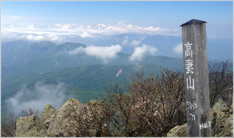昔、天岩戸に閉じこもった天照大神を洞窟から出した時、こじ開けた岩戸を空に放り投げた。その岩戸は葦原に落ちて戸隠山になったといい、戸隠神社は今も、岩戸を投げた神様たちを祀っている。そんな戸隠山に連なる高妻山もまた修験道の山で、登山道沿いにはあちこちに石仏や石祠などが置かれている。2,353mの山で戸隠連峰では一番高く、トガクシイワインチンやトガクシショウマをはじめ、高山植物も豊富に咲く。