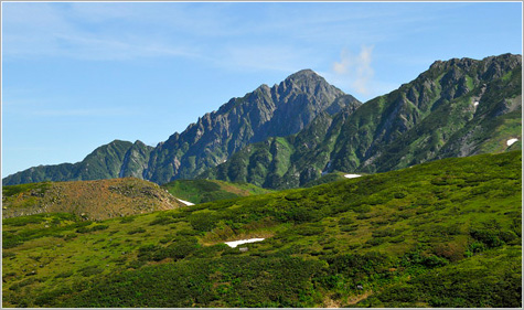剣を何本も突き立てたような岩稜が神々しい剱岳。「日本百名山」の著者は、剱岳を穂高岳と同様、峻烈、豪邁の風格があるとし、仙人池あたりから望むのが最も見事だとする。長く人を拒んできた信仰の山・剱岳は、名ガイドの案内で征服された。長次郎谷、平蔵谷、源次郎尾根などと、ガイドの名が残っている。冬は厳しい表情を見せる剱岳も、夏にはライチョウが姿を見せ、アオノツガザクラやハクサンイチゲなどの花が咲く。