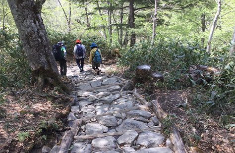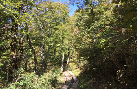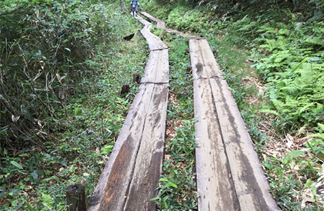 湿原や森林内には立ち入らずに、木道や登山道を歩きましょう。