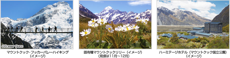 南島を南北に貫くサザンアルプスの山々や数々の氷河によって形成された景観が特徴で、氷河や氷河湖、氷河谷(フィヨルド)など、日本では見られない景色を楽しめます。