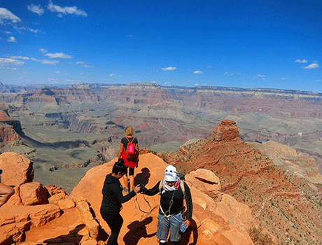 グランドキャニオンの壮大なスケールを全身で感じる、絶景ハイキングコース。トレイルの途中では、360度に広がる断崖絶景が目の前に広がり、まるで大自然の中に溶け込むような感覚を味わえます。