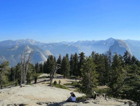 ヨセミテを象徴する景色の1つが、ハーフドーム。シャトルバスで行ける展望台、グレーシャーポイントはそのハーフドームが美しく見えるおすすめポイント!ヨセミテ国立公園の絶景を上から一望します。