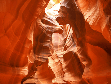 アメリカ・アリゾナ州ペイジ近郊に広がる、まるで異世界のような砂岩の渓谷。長い年月をかけて、上流からの鉄砲水と風が砂丘由来の砂岩を削り出し、狭く深い通路と幻想的な造形美を生み出しました。