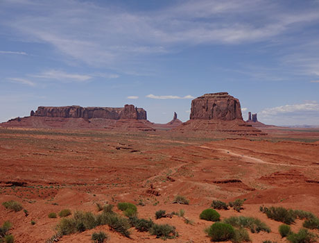 モニュメントバレーは国立公園ではなく、ナバホ族の居留地です。アメリカの原風景、西部劇の舞台を、ジープに乗って大きなビュートの周りを一周することができます。ハイキングでは、ジープからだけでは見えてこない奇岩の岩肌や、小さな花々にまで触れ、より思い出深いものへと誘います。