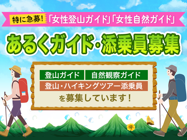 各種登山・ハイキング系の有資格者、また添乗員希望の方は国内旅程管理主任者