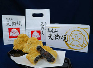 外はカリカリ、中にはモチモチの生地とほんのり甘い黒豆の餡の詰まったスイーツ。特徴的な見た目は、薬王院の御本尊様をお護りする存在として崇められる烏天狗がモチーフとされています。