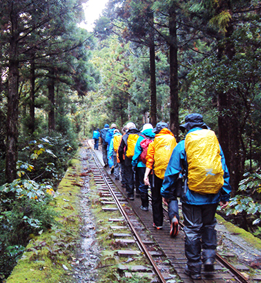 ほぼ平坦だったトロッコ軌道の終点、この先は階段の続く本格的な登山道になる。トイレや水場にもなる沢もあり、ここで小休止をしてから巨木の続くトレッキングのハイライト・大株歩道での登山に備えたい。