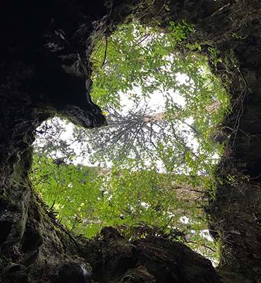 江戸時代に伐採された屋久杉の切株。大正時代に来島し、日本の針葉樹林を世界に紹介したアメリカの植物学者の名が由来。中には清水が湧き出ており、祠も安置されている。株の中から見上げたハート型に切り取られた空が、フォトスポットとしても有名。