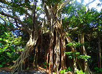 推定樹齢3000年、樹高19.5m、幹周り8.1mの堂々たる姿で車やバスで間近まで行ける屋久杉では最大の巨木。真下から見上げた苔むした幹と枝のコントラストは見事。着生しているシャクナゲの花(春)やナナカマドの紅葉(秋)など季節感も味わえる。