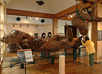 現在は伐採が禁止されているため、かつて伐採された切株や台風などの自然倒木で作られる。緻密な木目が美しい高級家具からキーホルダーまで品揃えも豊富。
