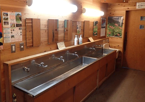 洗面所から出てくる水が飲料水として使用できるか(大抵は使用可)、ハミガキ粉や洗顔料を使用できるか(大抵は使用不可)、確認した上でマナーを守ってお使いください。飲料水として使用可能であれば、安心して水筒に補給しましょう。水の確保が大変な稜線上の山小屋では、洗面所がないところもありますので、そうした山小屋で飲料水が必要な場合は天水(雨水)を有料で購入します。山の水は貴重です。節度を持って利用しましょう。