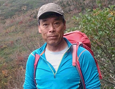 明るい性格に丁寧なガイディングが持ち味のガイド。子供の頃から自然に親しむ中、深田久弥が最初に登った富士写ヶ岳をスタートに、20代で本格的な登山を開始。