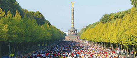 平坦なコースのため世界屈指の高速コースとなっており、4万人ものランナーが駆け抜けます。世界記録も数多く誕生し多くの日本人ランナーもその名を刻んできました。ベルリンの観光名所をぐるりと巡るコースとなっており、音楽やバンド、ダンスなど大会を盛り上げてくれます。