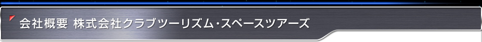 | 社名 | 株式会社クラブツーリズム・スペースツアーズ 英文名 Club Tourism Space Tours Inc. |