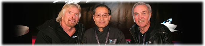 (左から)ヴァージングループ リチャードブランソン会長、クラブツーリズム・スペースツアーズ前社長 浅川恵司、スケールドコンポジット社 バートルタン元会長