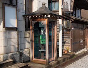 井波別院 瑞泉寺の再建を発端に、高い技術力の木彫刻文化が生まれた井波。参道である八日町通りは、手の込んだ木彫刻の作品であふれています。家の表札に見られる動物は、家主の干支を表したもの。ほかにも彫刻師たちが作った木彫り猫が町のいたるところに隠れているので、猫を探しながらの散歩も楽しめます。
