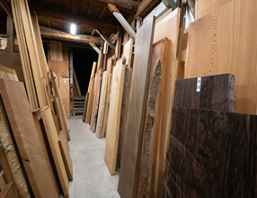 井波の彫刻文化を支える銘木店。なかなか出合うことのできない銘木を多数陳列。日本中から木工好きの方が買い付けに来ます。