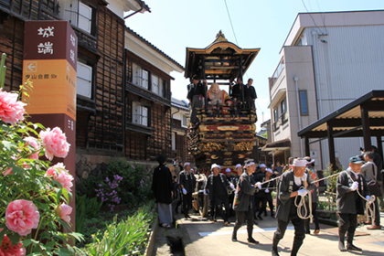 善徳寺の寺内町・門前町として1573年に開かれた城端は、絹織物が主産業だった町。「加賀絹」の名で京都でも販売され、加賀藩の篤い保護のもと繁栄しました。町人文化も華やぎ、毎年5月4・5日に開催されるユネスコ無形文化遺産「城端曳山祭」にもその面影を見ることができます。井波の精緻な彫りが施された獅子の舞を先頭に、加賀藩の庇護を受けた大工の技が光る傘鉾、伝統ある城端塗りの曳山が練り歩く祭りは風格があります。