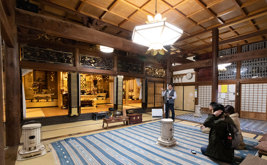 「まず木を見て、そこから立体的な仕上がりを想像して作る原案作りが楽しい」と木彫刻の魅力を教えてくれた前川大地さんは、この地で42年間制作を続ける父・正治さんとともに工房を営んでいます。「(彫っているときは)大きな木から命をいただいている気持ち」という正治さん。その言葉に、まわりのものすべてに感謝する浄土真宗の教えが浸透した、井波の風土が感じられました。彫刻師の思いが木を伝わって、作品に込められる。井波の地では、当たり前のように感じるその思いを、ぜひ、現地に足を運んで体感してください。