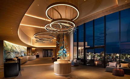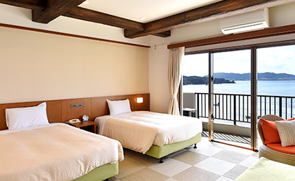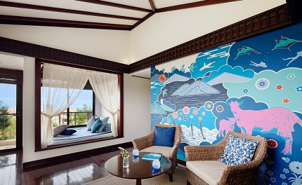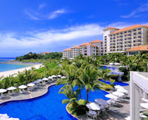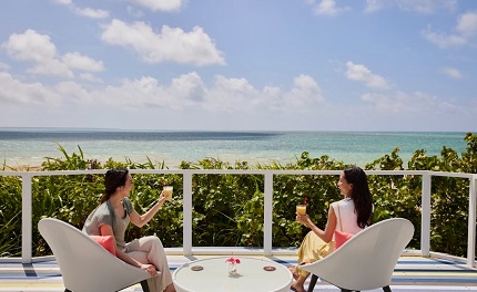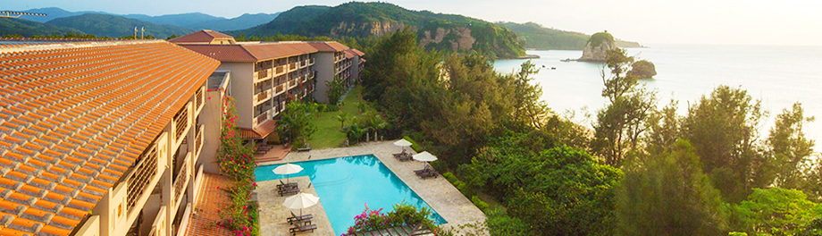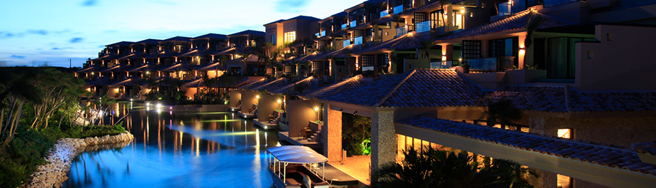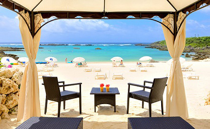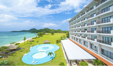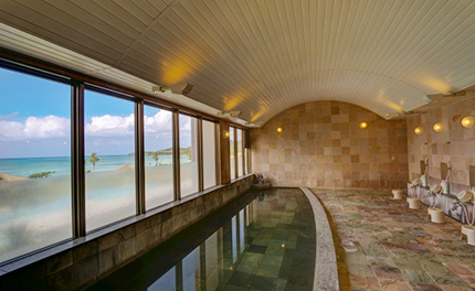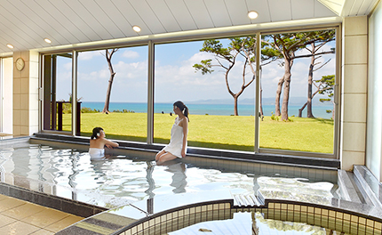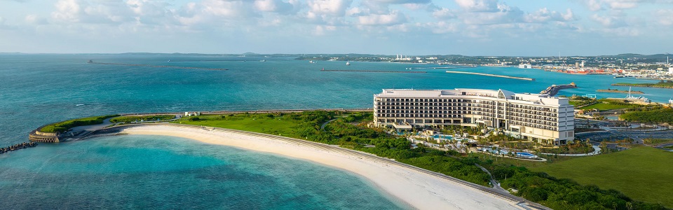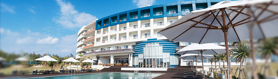 部瀬名岬に建ち、風が吹き抜け、波の音と光を取り込む上級リゾートホテル。多彩なレストランやショップ、エステ、グラスボートなども充実。