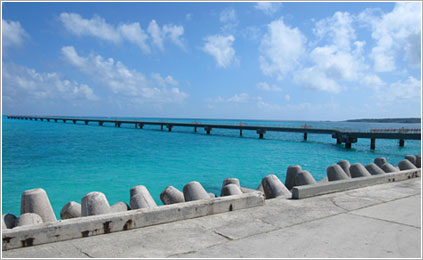 代表宮古島的透明度高且美麗的“宮古藍”的海,是由被稱為琉球石灰層的漂亮的白色地質和沒有高山和大河的平坦且沙土不易流入大海的地形而形成的。