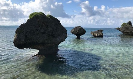 大神島の沿岸沿いに、奇石(ノッチ)と呼ばれる、キノコのような奇妙な形をした岩があります。