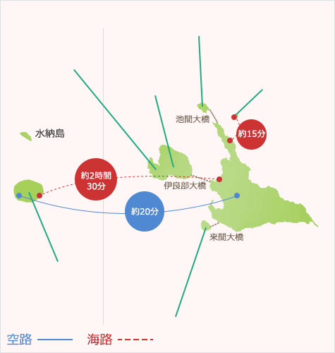 從宮古島可以搭乘定期船前往,但每天只有 4 至 5 趟往返。