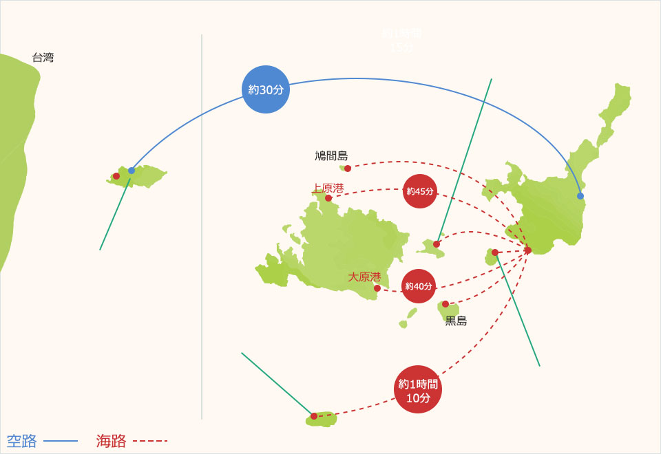 八重山諸島是由石垣島、竹富島、小濱島、黑島、新城島、西表島、波照間島、與那國島等12個島嶼組成的群島郡。位於沖繩本島西南400~500km處。